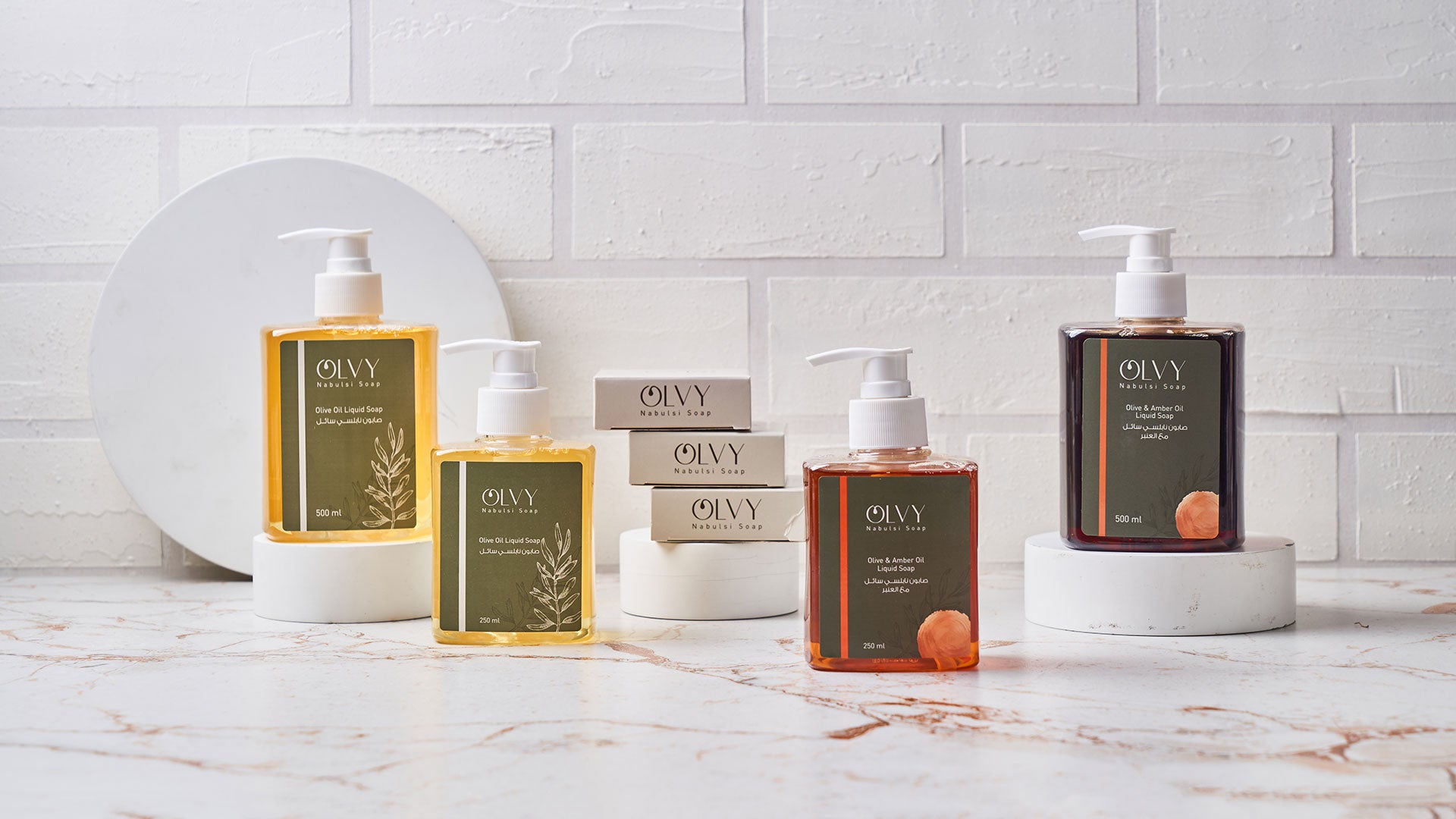 With OLVY, you can choose the perfect skincare product for your routine. Enjoy the lasting value of our 500 mL bottles, or the ease of our 250 mL liquid soaps for everyday use, or the rich, luxurious experience of our extra virgin olive oil bar soaps.